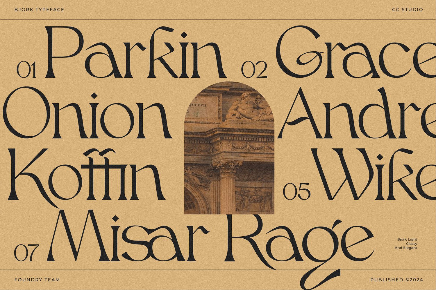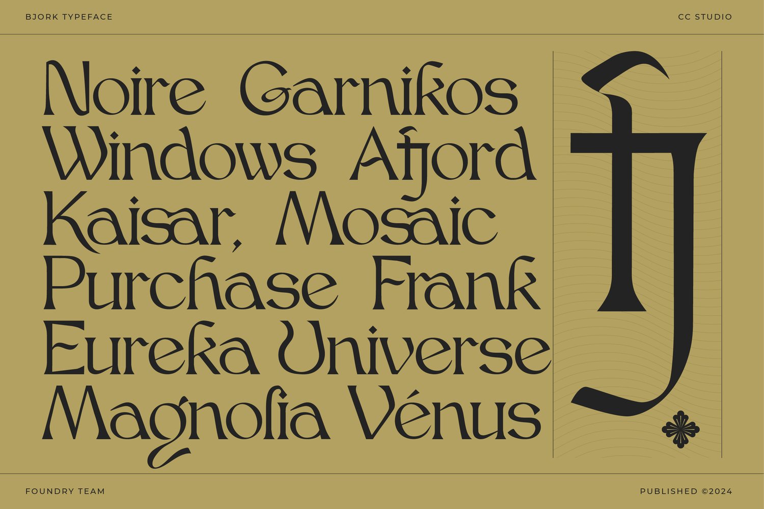 Unleash the elegance! Introducing Bjork, a brand new serif font that reimagines the beauty of classic calligraphy with a sleek, modern twist. Boldly refined, Bjork Serif offers a unique and stylish voice for your designs, adding a touch of class to headlines, web layouts, print projects, branding, logos, and more. With three weights (light, regular, and bold), extensive multilingual support, and a treasure trove of stylish alternates and ligatures, Bjork empowers you to create with endless possibilities.